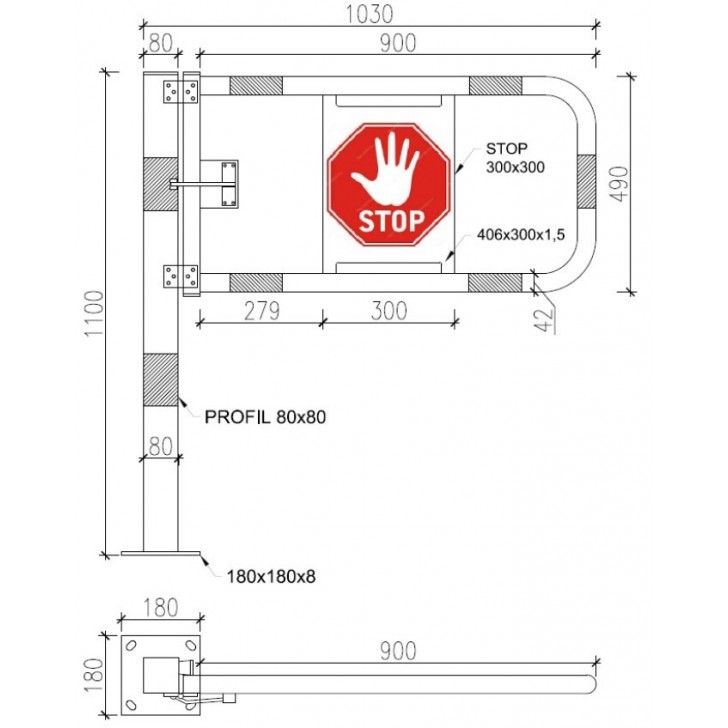 Bramka STOP uchylna, samozamykająca się, pozwalająca na bezpieczną organizację ruchu i przepływu osób, kontroluje ruch w magazynie lub na hali. Bramki montowane są poprzez przykręcenie do podłoża, wyposażone zostały w pionowy słupek. Furtki posiadają blokadę, niemożliwiającą wychylenie bramki w odwrotnym kierunku, która wyznacza jeden kierunek poruszania się części uchylnej. Bramka jest uniwersalna - można używać zarówno jako prawo lub lewostronną. Zmiana sposobu zamykania możliwa jest po przestawieniu skrzydła. Możliwa jest w prosty sposób regulacja prędkości powrotu skrzydła do bazowego miejsca.