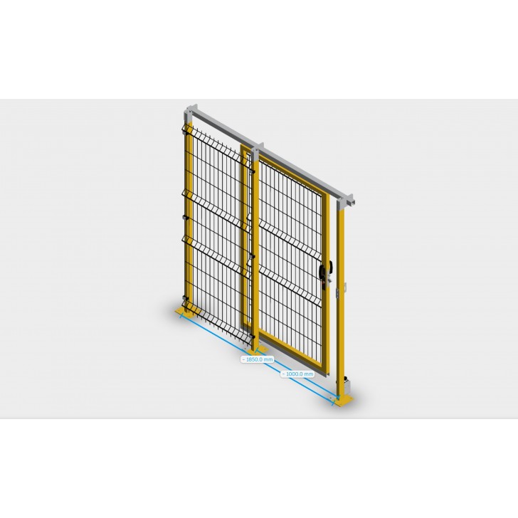 • wyposażony w: 3 słupki z uchwytami na siatkę, panel siatkowy, brama, szyna do podwieszania, uchwyty szyny, gniazdo zamka hakowego, gniazdo najazdowe, rolka prowadząca dolna, kompletny zamek (typ hakowy, zapadka, wkładka, 3 klucze)