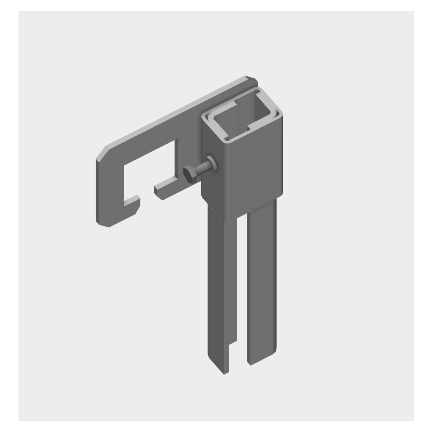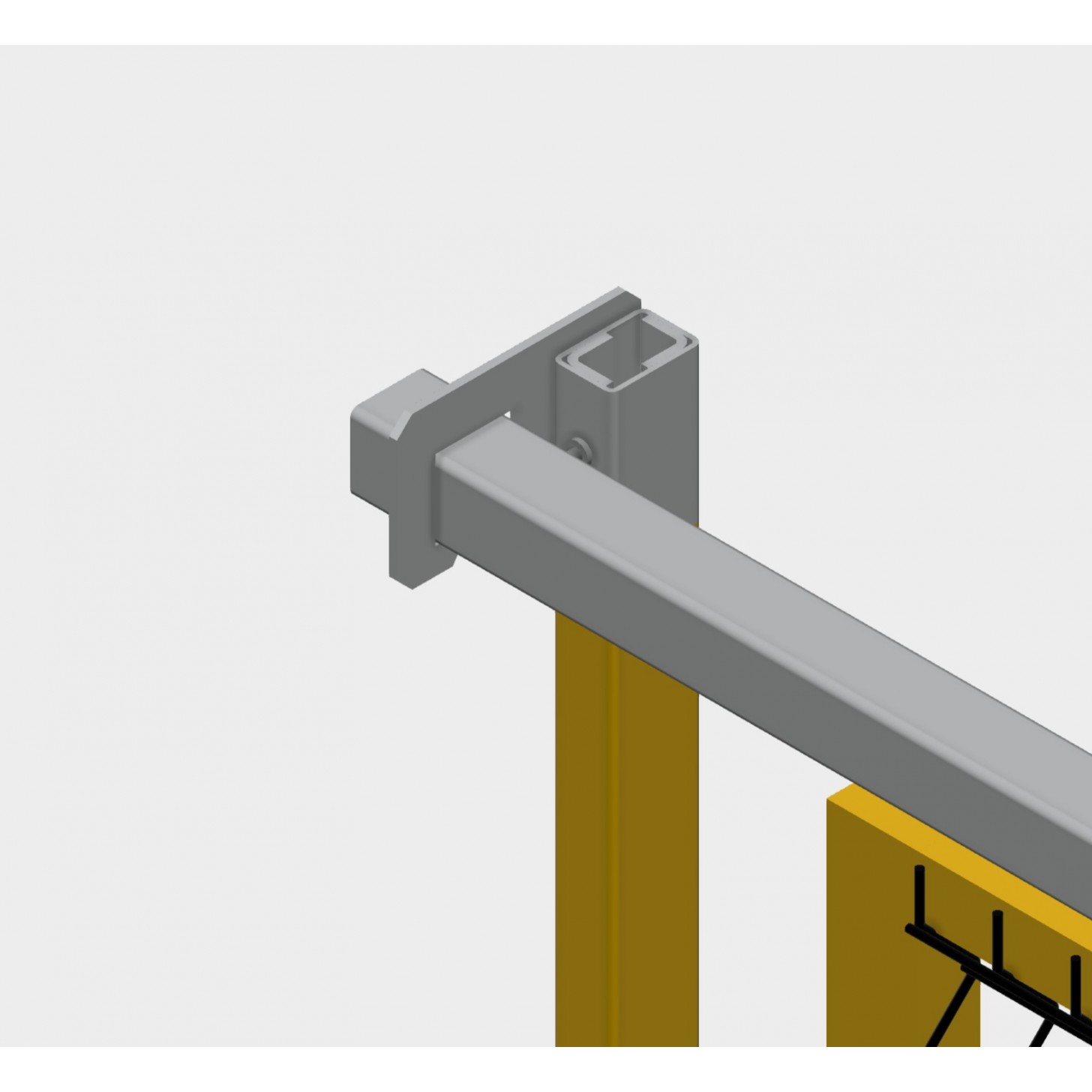 Uchwyt szyny do bramy podwieszanej 50x50 to solidny element montażowy przeznaczony do mocowania szyny jezdnej na słupku o profilu 60x40 mm. Uchwyt wsuwany jest od góry słupka, dzięki czemu montaż odbywa się bez wiercenia i przykręcania, co znacząco ułatwia i przyspiesza instalację.