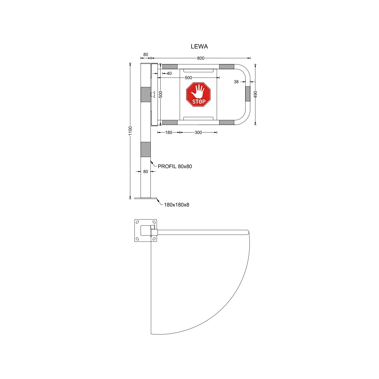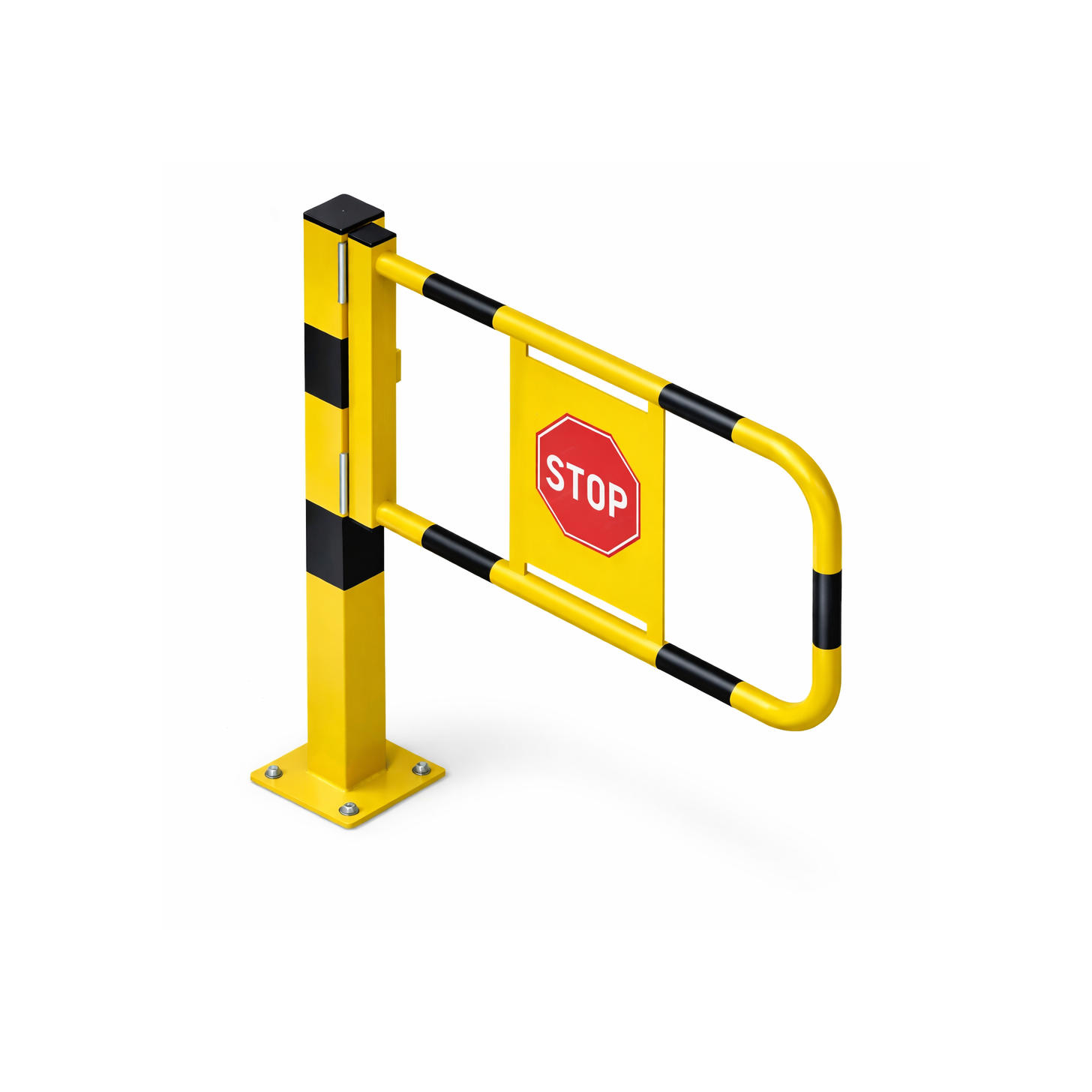 Bramka STOP bezpieczeństwa (antypaniczna) uchylna, samozamykająca się, pozwalająca na bezpieczną organizację ruchu i przepływu osób, kontroluje ruch w magazynie lub na hali. Bramki montowane są poprzez przykręcenie do podłoża lub ściany i wyposażone zostały w pionowy słupek. Furtki posiadają blokadę, nieumożliwiającą wychylenie bramki w odwrotnym kierunku, która wyznacza jeden kierunek poruszania się części uchylnej. Furtka bezpieczeństwa - dostępna zarówno jako prawo lub lewostronna.